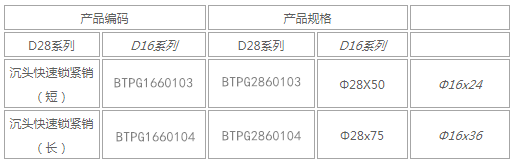 D16/D28沉頭快速鎖緊銷